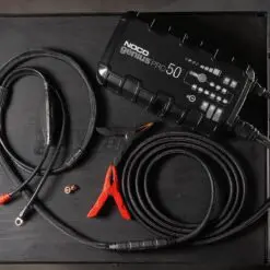 GENIUSPRO50, en 6-volts, 12-volts och 24-volts helautomatisk professionell smart laddare, underhållare, strömförsörjning och batteridesulfatator med temperaturkompensation klassad till 50 ampere för alla typer av fordon, marin- och djupcykelbatterier.