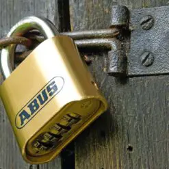 Rostfritt kombinationshänglås från ABUS, Nautilus 25543. Inställbar personlig kod som sitter på undersidan av låshuset. Mycket dyrksäker.